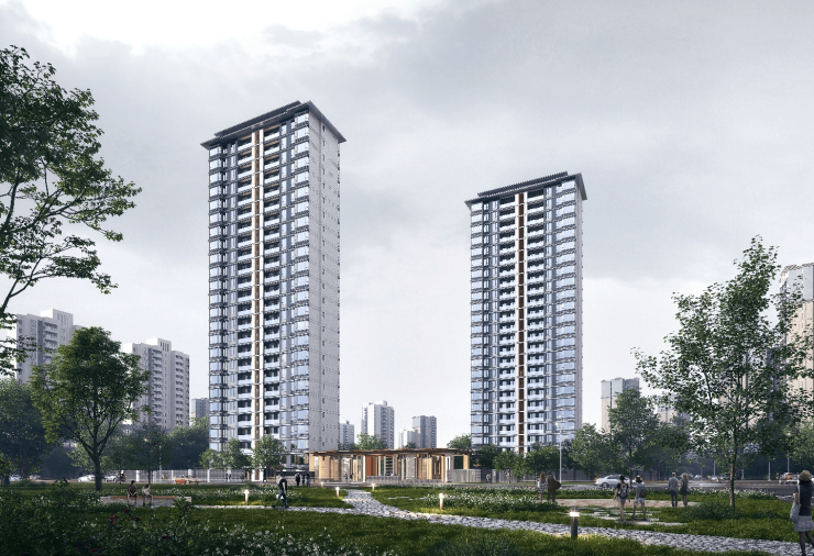 项目以2.0低密社区,本案14亩,左拥市政街心公园,右揽约40亩体育公园,街头公园,可谓60亩公园之上仅生长两栋高层建筑,周边为18F低矮楼层,本案25F,享受主城绝佳视野