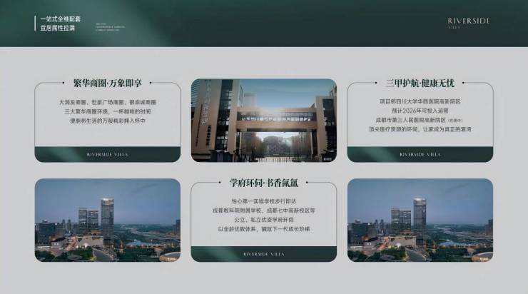首先值得关注的是双流是全国唯一一个实行 15 年义务教育的区域, 同时在项目周边已形成“幼儿园-小学-初中-高中 ” 的全龄教育体系 。直线距离900米的双流区怡心第一实验学校 、成都教科院附 属学校 、成都七中高新校区 、成都美视国际学校 、成都外国语学校等知名学府分布项目周边。