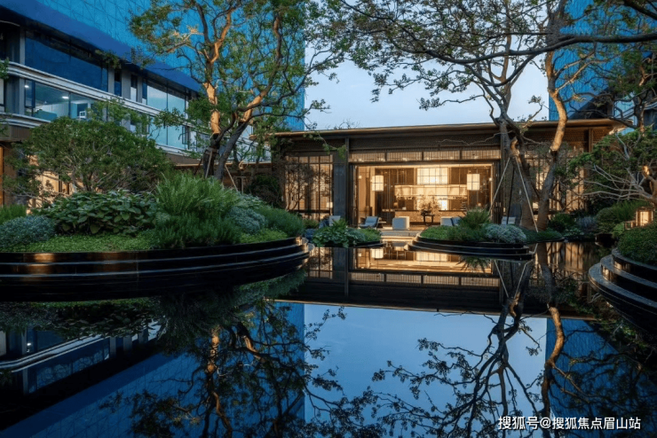 ▋ 沉浸式园林景观 110米中轴景观带,融合镜面水景、浮岛会客厅等元素,营造度假式居住体验。