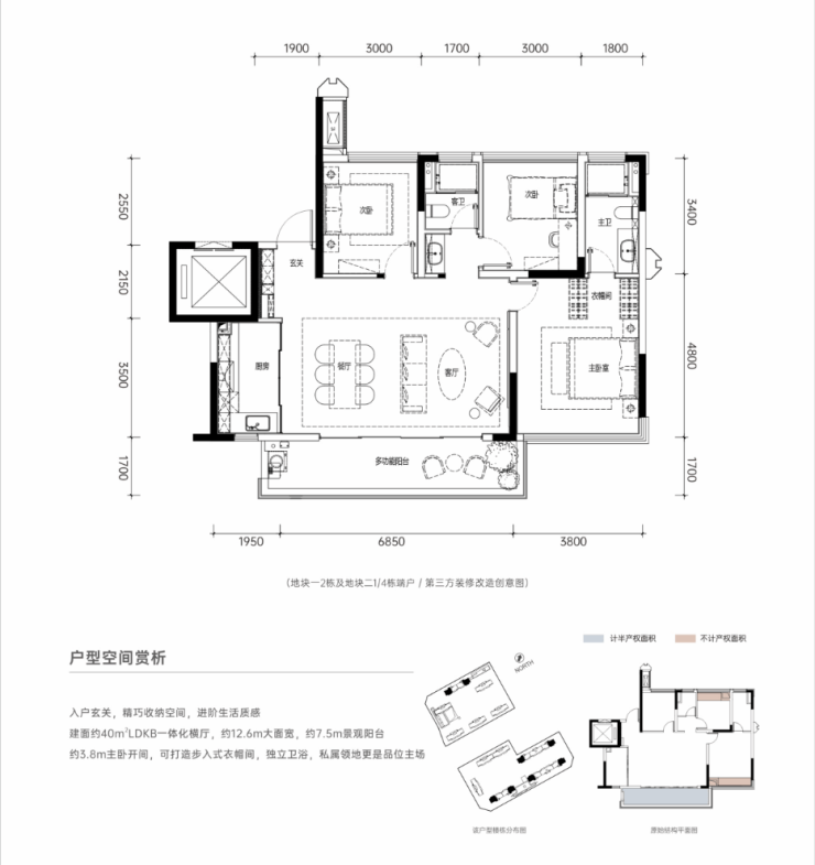 A户型 |116 ㎡三房两厅两卫亮点:1.约12.6m大面宽,全南北朝向2.约44㎡LDKG一体化横厅3.约6.85m南向景观阳台4.约3.8m主卧开间,步入式衣帽间