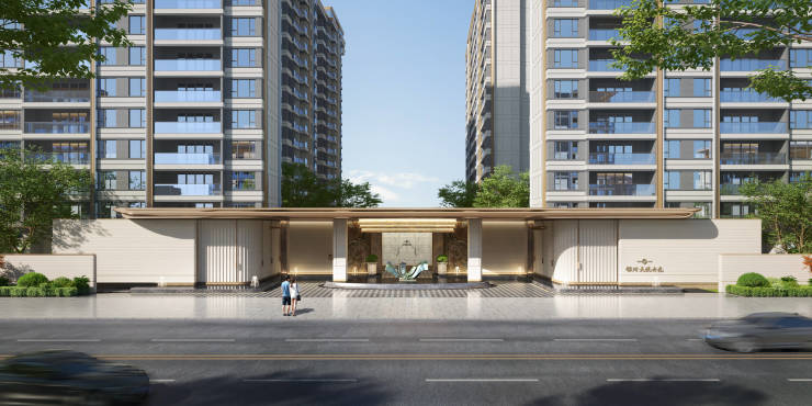 影院式叠级水景,定制精奢归家体验:打造定制化叠级水景体系,让客户进入小区第一眼就被震撼,同时单元入户配备专属景墙、地面标识与精致植物组团;从光影、软装、材质全维度营造 “松弛的精奢感” 归家感。
