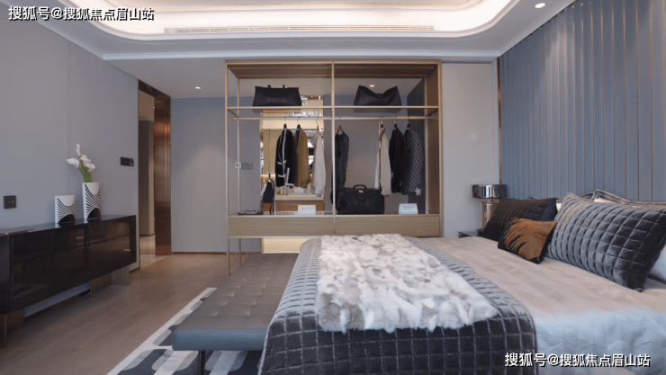 阔尺主卧套房空间,包含步入式衣帽间以及主卫空间,双洗漱台设计让男女主人早起不拥挤,生活更显从容,干湿分区的卫浴空间同时配备超大浴缸,生活的疲惫感于此消散一空。