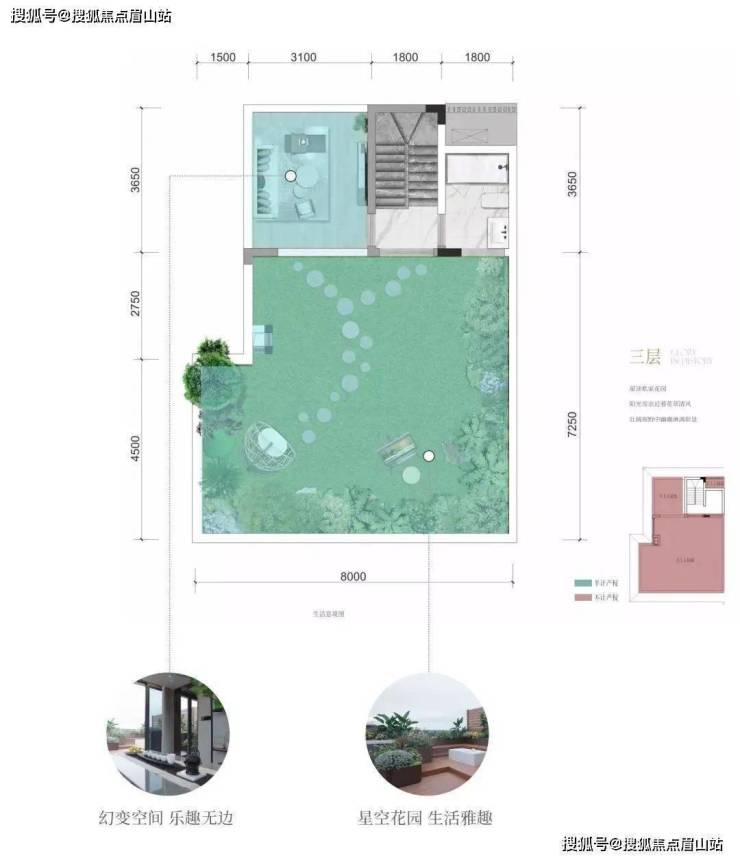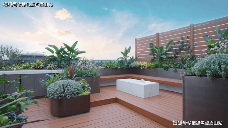 整个顶楼花园面积可达约 62㎡,因此上叠也可以被称为 3+1 房,露台区域后期可打造屋顶花园、星空露营、家庭电影房、聚会 BBQ 等,是理想生活中必不可少的一个多功能平台,也是天府玺对空间应用的体现。