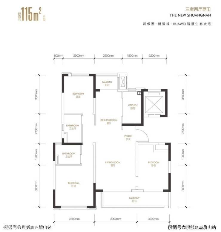115平热门户型,品质三居,南北通透,超大观景阳台。