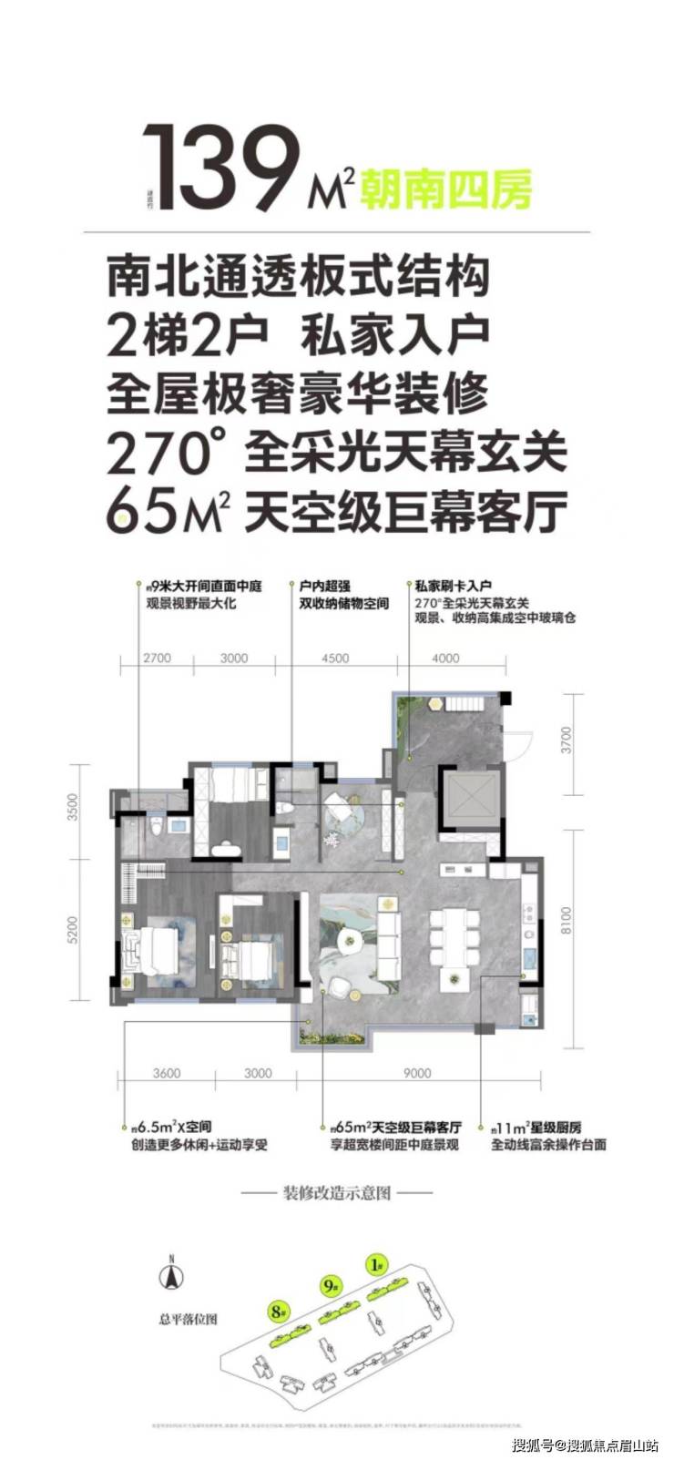 【139㎡四房-朝南四房】小高层139㎡(总高17层):2梯2户,电梯入户,65M²天空级巨幕客厅,270°全采光天幕玄关,私享入户花园(4号地块1栋)