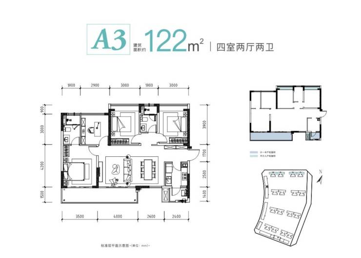 A3—建面约122㎡四室两厅两卫 时代梦想家