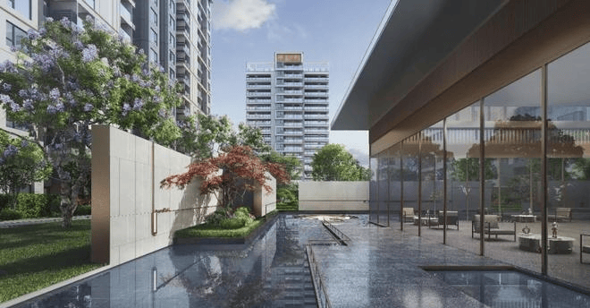 因为,大多数2.0容积率项目会采用阵列式布局,以拉满容积指标上限。但中建·匠心里却仍然规划了大围合中庭。大中庭不止带来了更丰富的景观享受,也带来了更开阔的视野、采光和私密度,让每一栋建筑都朝向园林。