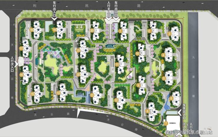 六大意趣空间、五大园区定制主题、儿童童梦空间等生活区串联其中,共同组成推窗可见的公园山水视角、与自然对话的生活体验空间。