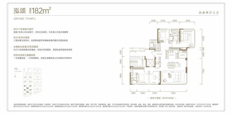 注:会客厅面积为173m/182m/230m²户型;2.4容积率为项目143亩整体容积率