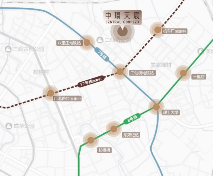 根据2017年提出的“中优”战略,成都规划有「两中七副」九大中心:主城三环内只有两个发展中心,一个是天府锦城中心、另外一个就是项目所处的八里庄副中心。