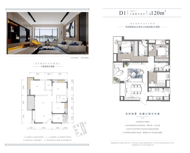 约24m长阳台衔接 270°环幕视野,将江安河与社区景观引入室内,实现“大空间+全观景”的居住体验。