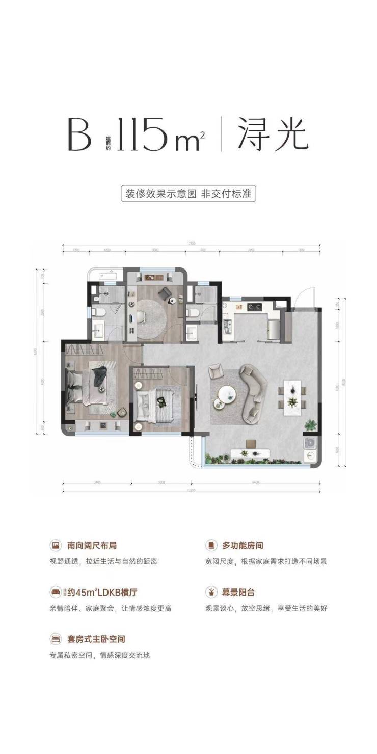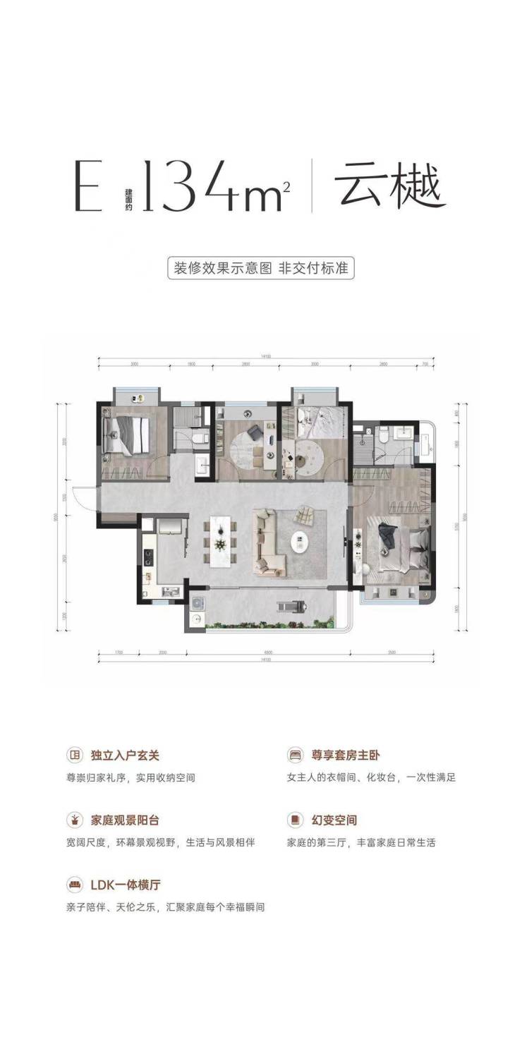 作为华润置地在成都天府新区的标杆项目,天府九里位于锦江生态带核心区域,周边汇聚环球中心、SKP等高端商业,以及锦城湖公园、桂溪公园等生态资源。项目自身定位为“高端改善型住区”,主力户型面积约143-225㎡,精装交付,总价约230万起
