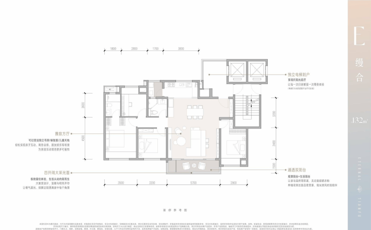 E户型 建面约132㎡四室两厅两卫
