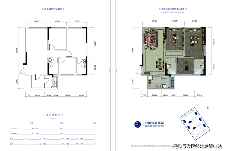 SOHO:E1户型建筑面积约106㎡