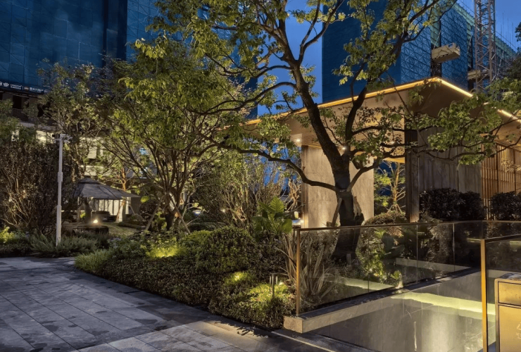 面对占地约98亩、容积率1.8的优质地块,嘉禾兴地产摒弃了货值更高的“高低配”,而是将更多的土地给到院落本身,将整个社区呈现为23栋8-12F的洋房产品+5栋独立商业。