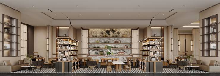 从世界奢侈酒店——曼谷四季酒店探寻脉络,臻选宝格丽同款奢石、以巧思凝萃的整面精奢石景墙,打造属于东安湖的显赫迎宾门仪,在光与影交织的奢华场景间,气派与精致、高贵与艺术浑然天成。