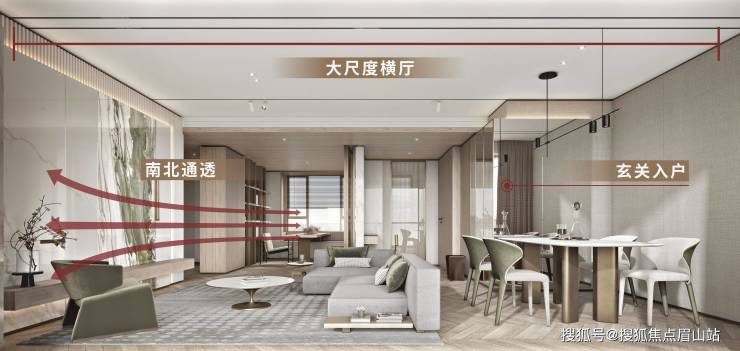 ▶健康住宅:方正户型,南北朝向,通风对流;全横厅设计,光照充足;玄关入户,维护私密性;景观明厨,告别阴暗潮湿~