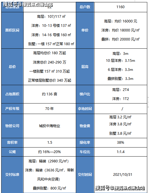 交付时间:2021.10.31 洋房160/叠墅11.30交付