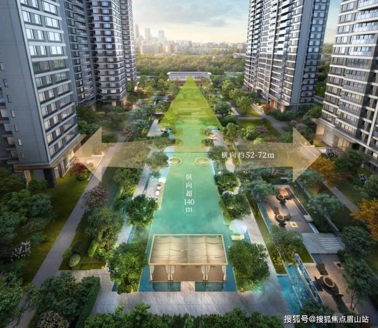 超140米无界视野:纵向超140米(仅指7栋至12栋距离)、横向约52-72米楼间距,用标准足球场的尺度打造无界视野,实现户户开窗揽景,最大程度保障居住的私密性