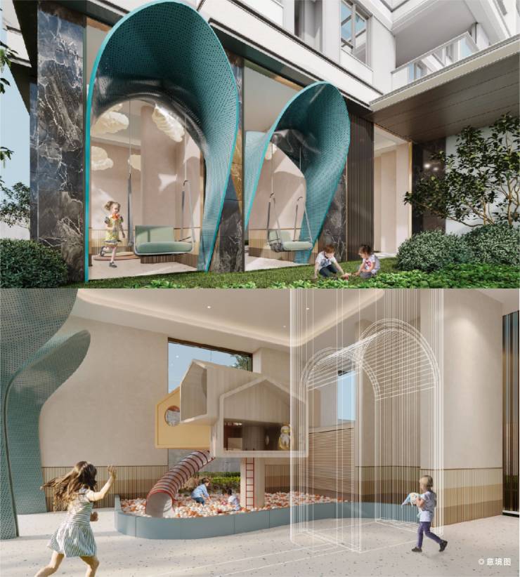 【架空层泛会所】:首层全架空,开放式泛会所与封闭式结合,消融空间界限,模糊建筑与景观的边界感,打破户外活动的空间时间限制。回家不着急上楼,小区内部直接实现健身/会客/儿童游乐等功能,改善楼盘的体检表,空间功能实用多点多样。