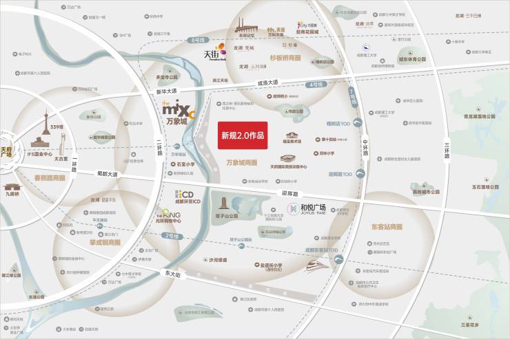三纵两横干道——三环、二环、中环、东大街、蜀都大道