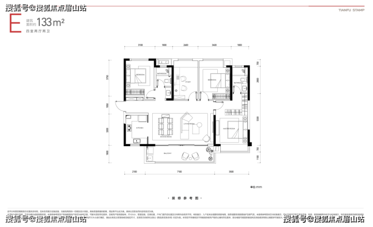 其它户型方面,因为本批次不推,且很多户型大同小异,所以我就放一个133平的户型图,大家自行了解,这3个户型也算是天府合印最具代表性的户型了。