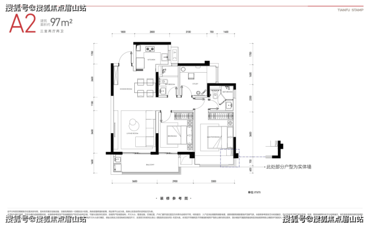 天府合印一批次只会推出9栋共计108套房源,因此它这次也只有两个户型可供选择,分别是97平三房两厅双卫和113平米三房两厅双卫。
