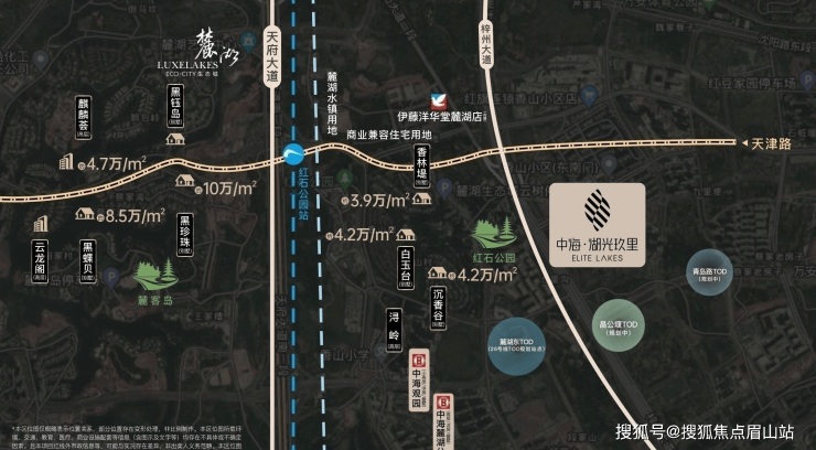 🏕 万亩生态:与红石公园一街之隔,麓湖生态区,天府森林公园、天府中央公园等近万亩绿肺环绕