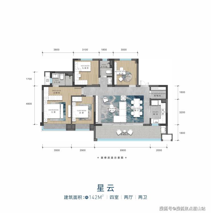 洋房142㎡:2T2独立入户,近9m阔尺阳台,通透采光