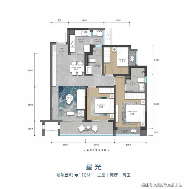 【户型鉴赏】高层110㎡:超宽楼间距,户户超中庭