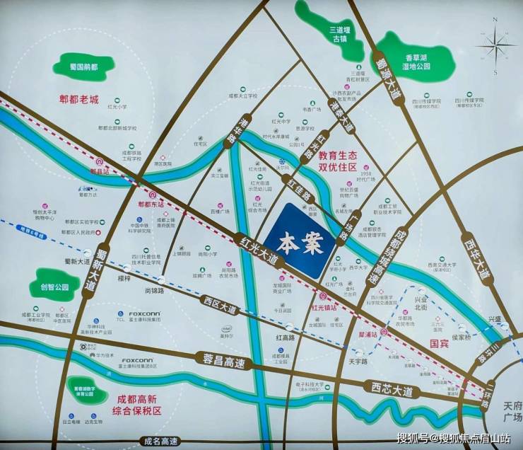 ✈️教育 :学府环绕公立幼儿园:幸福路幼儿园(1km)红光街道示范幼儿园(200m)公立中小学:红光学府小学,思源学校,红光中学成都天立学校:私立k12教育,距离本项目约2km左右