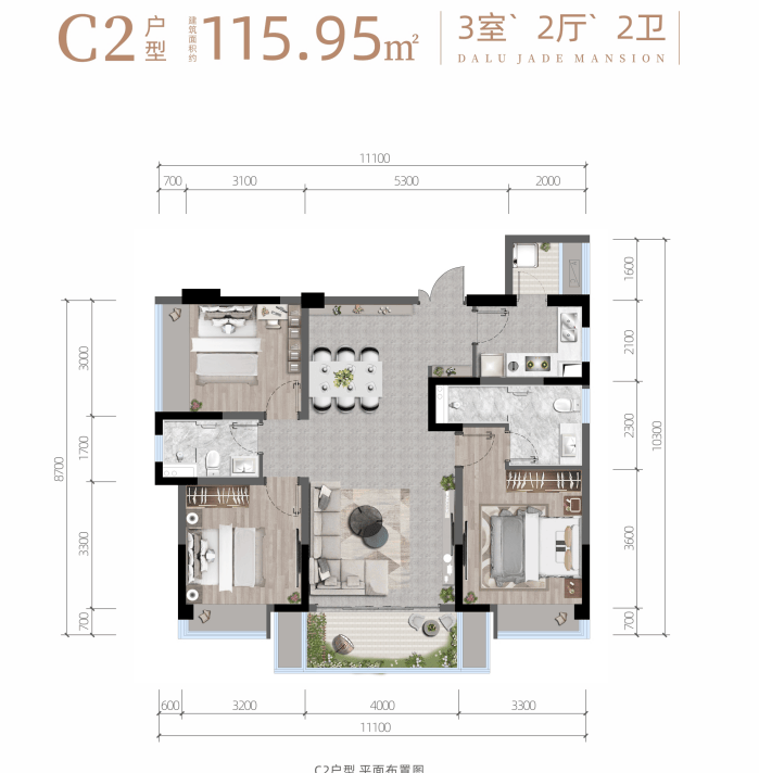 116/136m²套三套四方正户型,层高达3.15米,媲美市场大平层