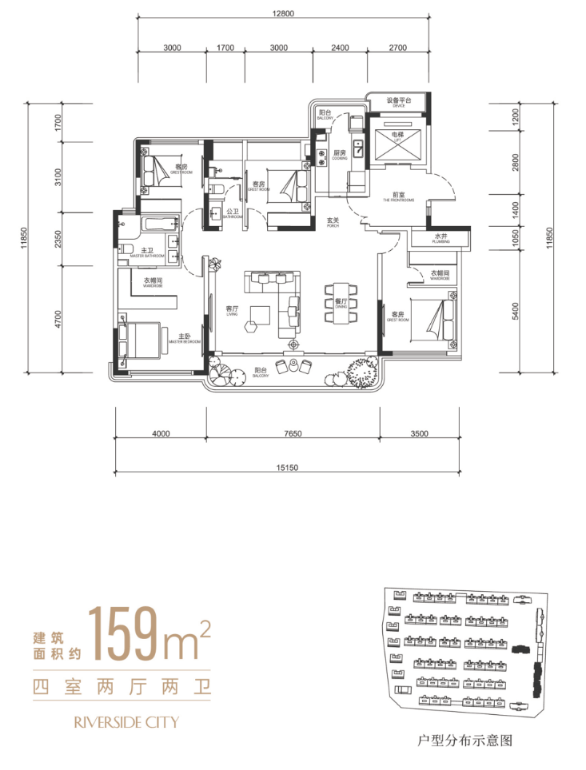 此系列平层产品定位为城市精英的品质进阶之选。户型设计强调空间的通透感与现代感,通过大面宽落地窗最大化引入江景与城市风光。129-159平方米的尺度兼顾了功能性与舒适度,适合追求核心地段、优越景观与高效生活的精英客群。