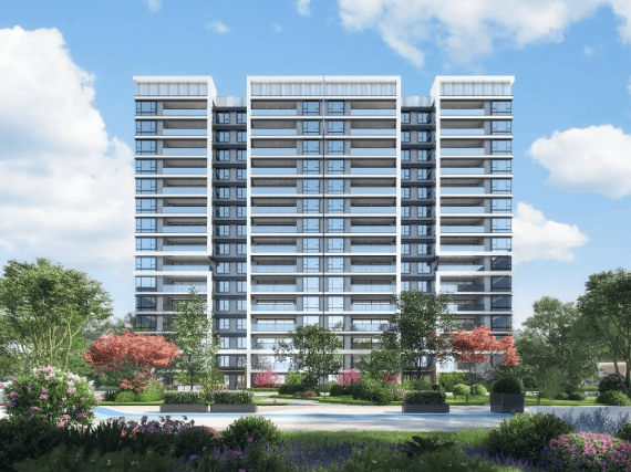 纯粹产品形态:社区规划为纯粹的 “2T2板式洋房” 住区,建筑层高为12-15层,总计734户。采用板式结构与电梯入户设计,确保了居住的私密性、通透性与尊崇感。