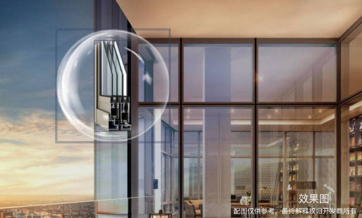 2、超高窗墙比,甄选Low-E玻璃、断桥铝窗户,不计成本的使用大屏玻璃面,打开居住的眼界。