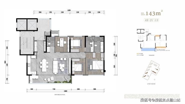 两梯两户纯板式 / 双套房设计 约36平主卧套房 / 全房三明卫 阔尺横厅 / 近20米南向大面宽 / 约10米阳台