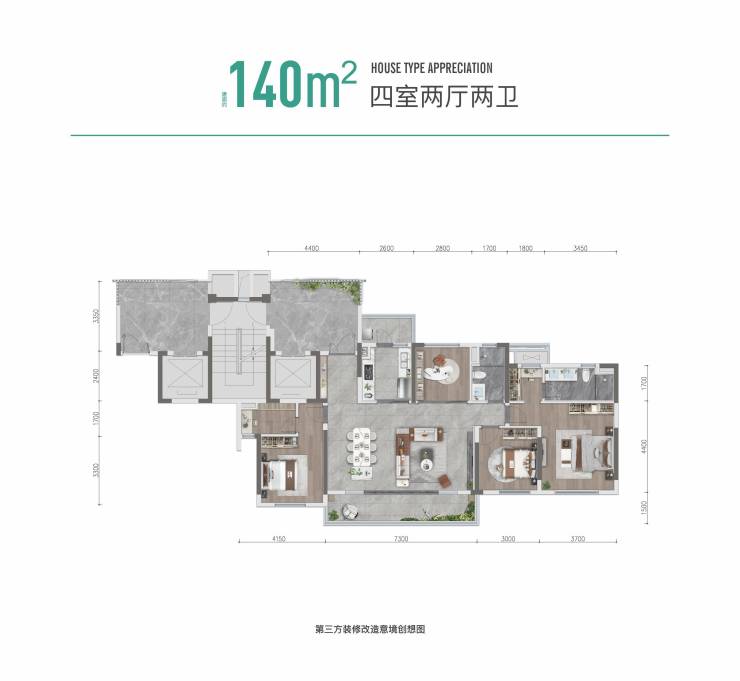 ★建面约140m² 北辰星宽境奢阔四房,超宽楼间距中庭景观、双套房设计、总统主卧套房。