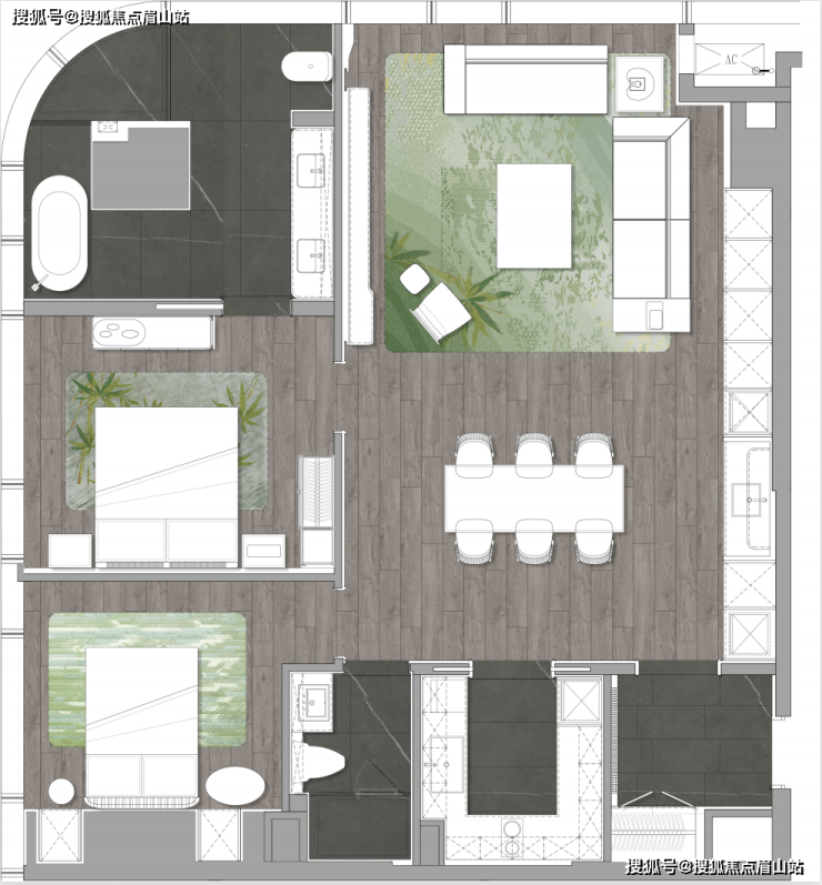 户型鉴赏A / A1户型居其—戴昆设计,完美结合成都竹文化,通过将“竹”的诸多意象表达,与墙面、花艺、灯具、摆件等融合,进行艺术再造