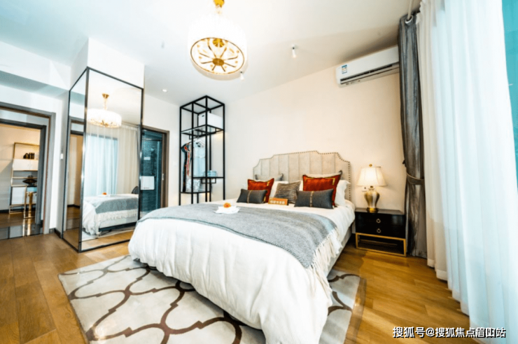 奢享主卧套房,全明主卫+大面宽观景窗+步入式衣帽间,预留婴儿床、梳妆台、双床头柜等空间,奢华主卧自成天地。