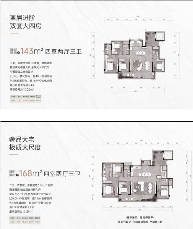 04 主力户型解析 全系143-245㎡精装大平层,以四至五房全能空间,满足多代同堂与品质改善的全维想象