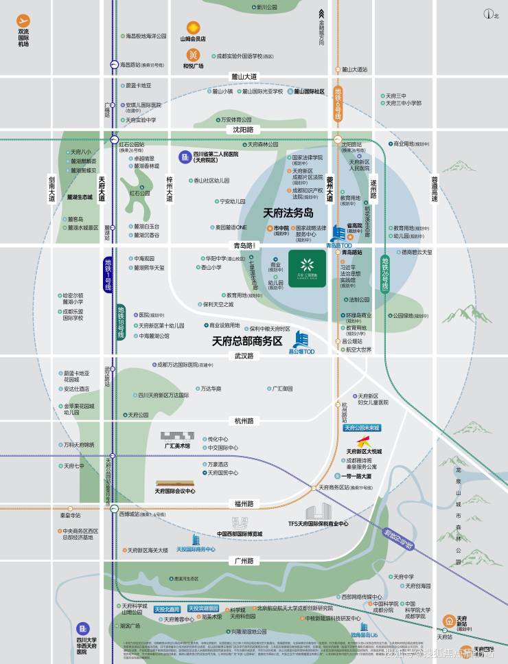 天府法务岛:人城境业相融的生活高地在公园绿地的环绕下,青岛路商务区将打造成一座“天府法务岛”专业法庭和天府新区检察院法院等重要法务产业聚集地,法务精英汇聚地
