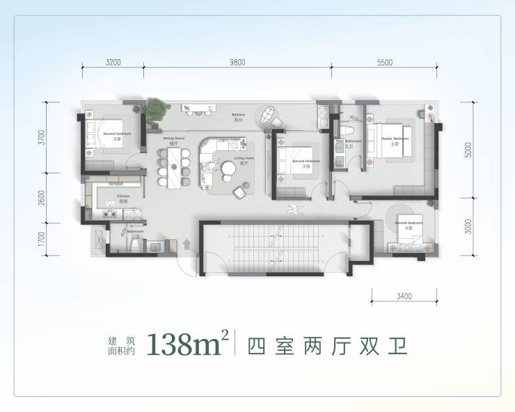 ▷沙龙派对系统:LDK一体化丨家庭观影区丨餐桌交流区丨阳光空中吧▷度假奢卧系统:度假式主卧丨三件套卫浴丨宽幕观景▷密友客房系统:独立客房丨隐私分区丨主客分离▷家庭平权系统:二孩平权丨镜像卧室丨亲密半径