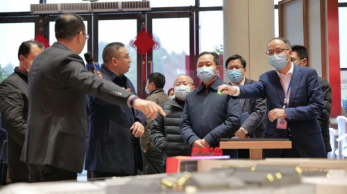 在项目规划全景沙盘前,刘主任详细听取了仁寿县行政审批局吴茂军局长对天府仁寿万达广场项目大商业和住宅区各类业态规划以及招商引资进展,在高度肯定了仁寿县营商环境及天府仁寿万达广场项目“三快一高”后,就项目的未来规划与运营等提出了宝贵的指导意见。