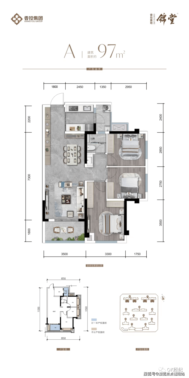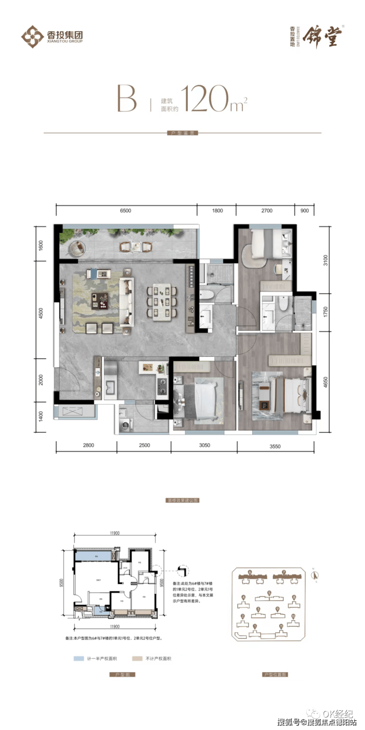 瞰景高层6、7号楼清水交付:建面约 97㎡、120㎡(97赠送13平米,120赠送14平)