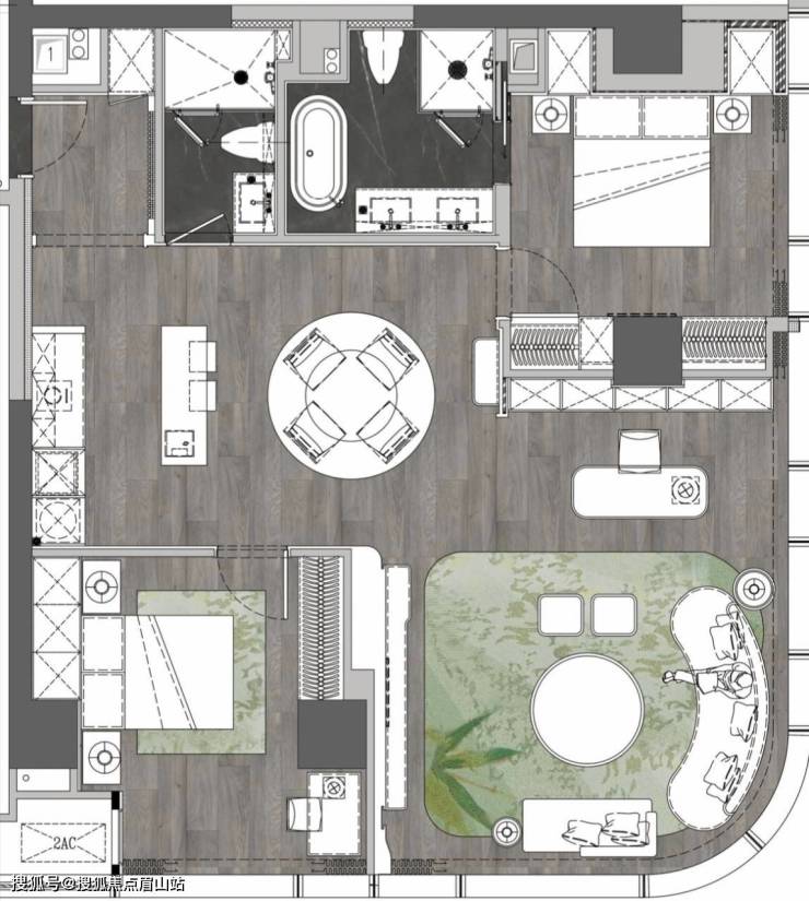 户型鉴赏A A1户型居其—戴昆设计,完美结合成都竹文化,通过将“竹”的诸多意象表达,与墙面、花艺、灯具、摆件等融合,进行艺术再造超越160㎡的空间尺度体验性感套房,50㎡时尚派对厅全成都最性感的220米高空天浴
