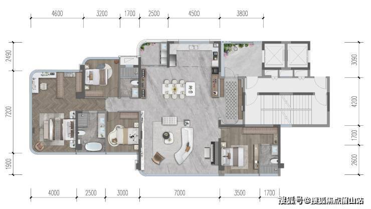 ▌明星户型①:建面约143㎡四房两厅三卫(洋房)· 视野绝佳临河道公园,视野开阔观景效果绝佳,享受天然后花园· 业态稀缺7层真洋房,板式结构,核心地段城市稀缺产品· 私享入户约11㎡私享入户花园,约270°转角光厅,采光视野绝佳· 墅级层高约3.3米别墅级阔尺层高,空间感强· 双套设计四房三卫双套房设计,满足三代同堂,二胎家庭功能需求· 阔尺厨房约9㎡阔尺厨房,可加装岛台设计中西厨· 超大横厅约7.2米LDKB一体横厅,多功能房灵活可变空间,营造板式通透对流空间体验· 奢享主卧约35㎡主卧套房,约10㎡独立衣帽间+梳妆台,独立卫浴且可容纳浴缸,奢侈享受· 超大空间实际可利用空间约建筑面积的108%,天新TOP级奢享