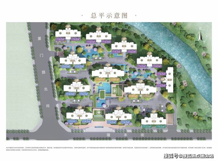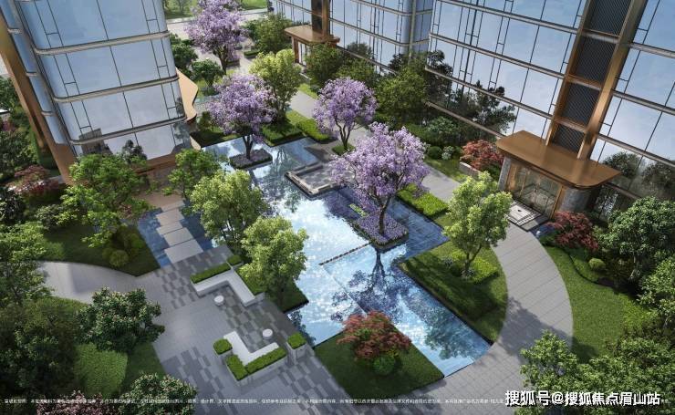 ▌【景观篇】 14%软景中水景占比约14%,媲美百亩级大盘水景规划引水入园,打造三大中庭水景,总计约1400㎡水系面积。甄选紫薇、泰山油松、蓝花楹等全球名木,匠造九章景观节点。