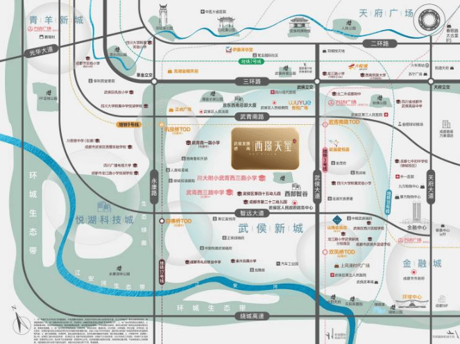 TOD枢纽中心:项目地处武侯区唯一拥有四大TOD(双凤桥、机投桥、白佛桥、武青南路TOD) 布局的板块。TOD模式不仅带来四通八达的轨道交通,更将驱动商业、生态等重磅配套的全面落地。