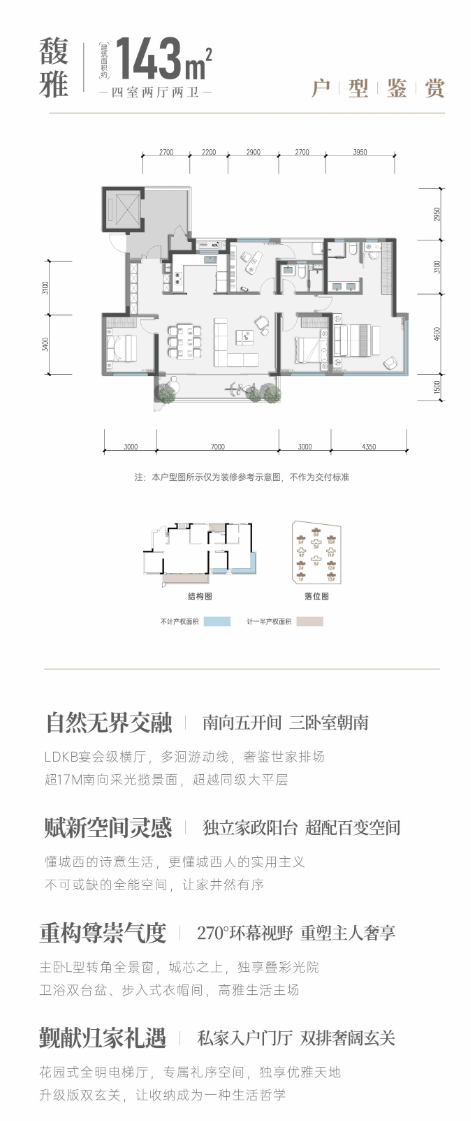 04 主力户型解析 精粹143-190㎡纯粹改善华宅,以全T2板式布局与奢阔尺度,承载多代世家生活与顶级圈层社交的全维想象