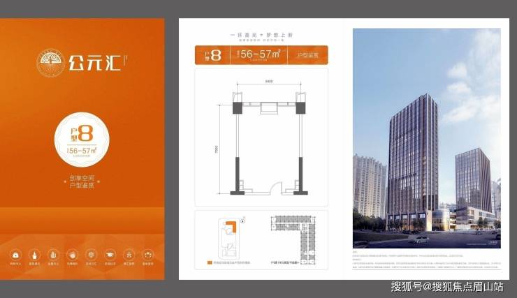 主推56平,总层:28层 ,4楼及以上为公寓,梯户比:7梯30户,层高:4.5米,公摊:30%,